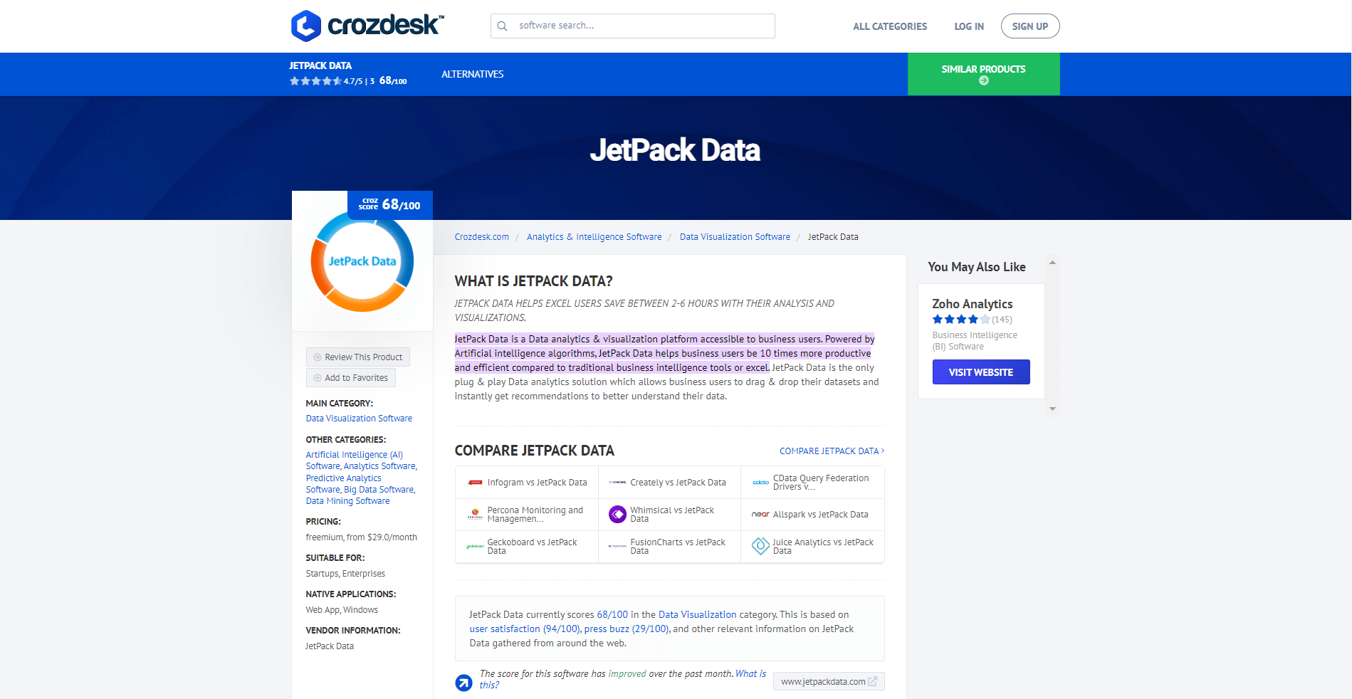 JetPack Data is a cloud-based data integration platform that simplifies data movement, transformation, and visualisation. It provides a comprehensive set of tools to assist businesses in easily transferring data from several sources to their desired destination, regardless of data type or location. Users can combine...